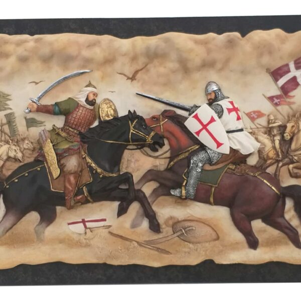 Découvrez une pièce d’art exceptionnelle avec notre Sculpture Murale ou à poser de la Bataille de Hattin, une représentation détaillée et captivante de l’affrontement épique entre les Croisés et les Sarrasins. Cette sclpture en relief est encadrée et prête à être accrochée, ajoutant une touche historique et élégante à votre intérieur.
