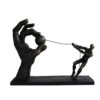 La statuette est en resine de couleur bronze avec une finition sombre légèrement patinée par endroits pour accentuer les reliefs.