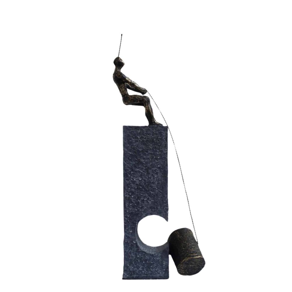 Le personnage, solidement ancré sur un bloc de pierre, tire de toutes ses forces pour hisser un cylindre symbolisant la persévérance et l’effort continu. Cette scène incarne parfaitement la résilience, la détermination et l’accomplissement personnel. La statuette inspire à dépasser les obstacles et à se consacrer pleinement à ses objectifs, quels qu’ils soient.