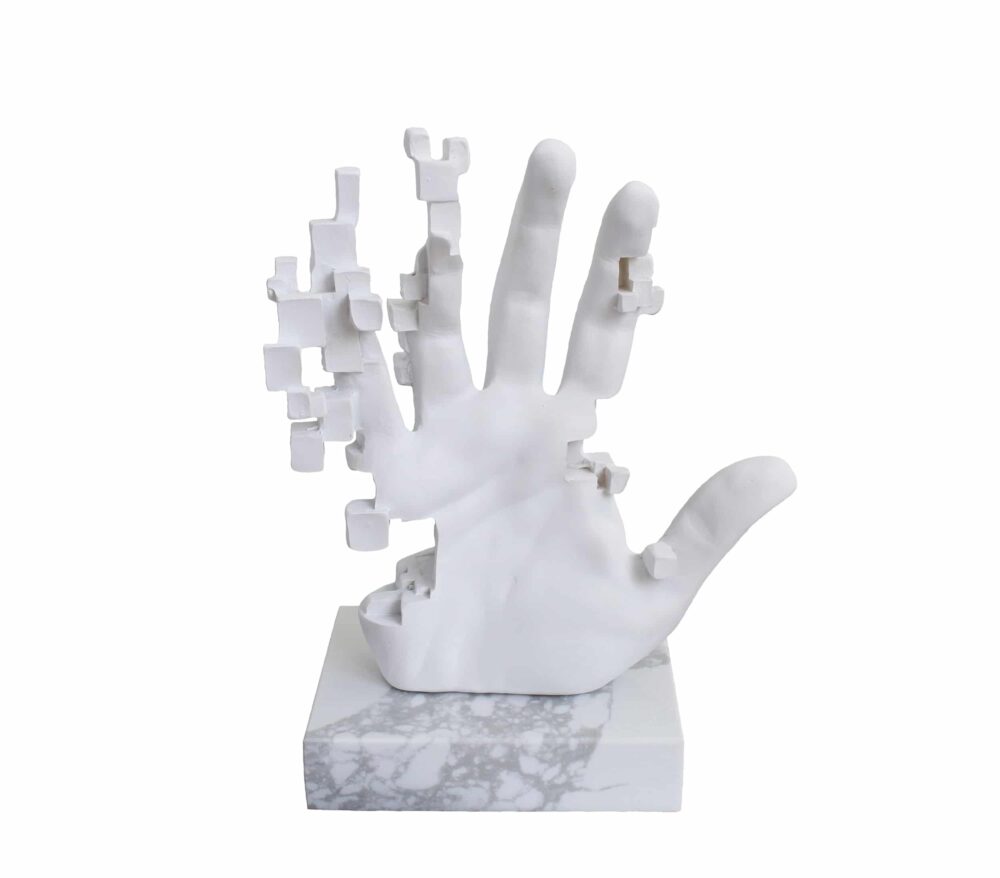 Statuette Décorative Main Fragmentée en Résine Blanche sur Socle en Marbre – Design Contemporain