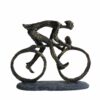 La statuette présentée est une œuvre artistique moderne qui illustre une scène intrigante et symbolique.